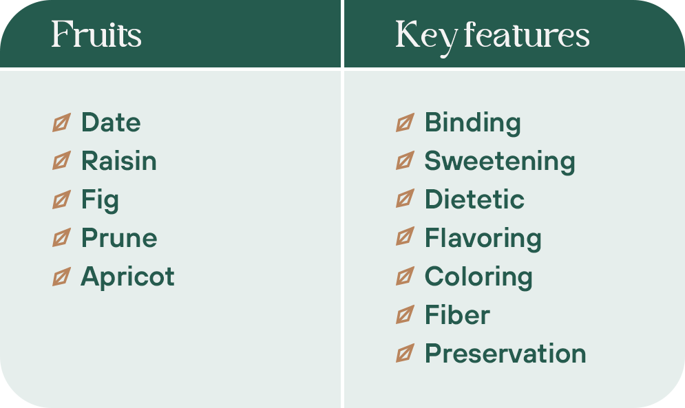 Adding our dried-fruit Juice Concentrates or Purees to your bars and granola can enhance their texture and moisture content. The natural sugars in the fruit help bind ingredients together, resulting in bars that hold their shape better and have a softer, chewier texture, which ensure a more enjoyable experience for your customers. Our solutions can provide the perfect flavor profile to complement your recipe.
